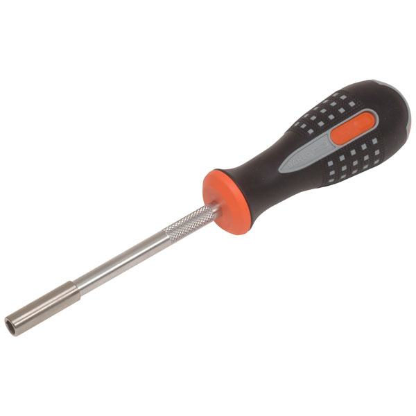 Bahco 808050 TORX Screwdriver with a high torque bearing capacity and lifetime endurance with alloy steel shank and strong magnet. Cartridge style sliding bit holder in the handle stores six bits. Contains: