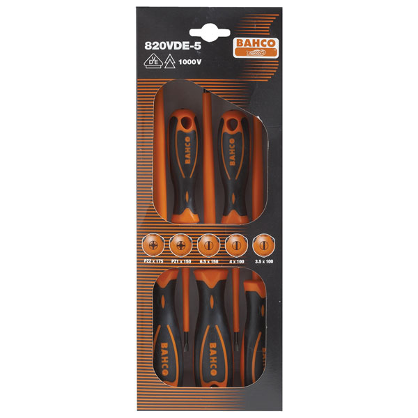 Bahco 820VDE-5 800 Series VDE Screwdriver Set Slotted/Pozi - 5 Piece