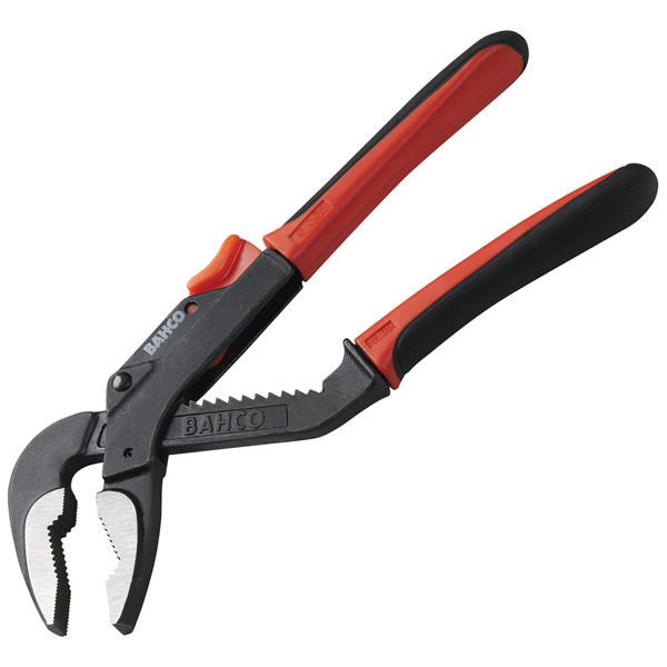 Bahco 82 Series ERGO™ Slip Joint Pliers with outstanding jaw opening and depth with speedy one hand setting. By pressing the unique thumb operated button the parallel jaws can be adjusted in 9 to 13 positions depending on model.