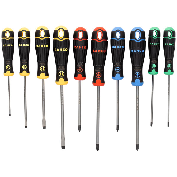 Bahco BAHCOFIT Screwdrivers have 2-component handles with vertical grooves for comfortable grip and maximum force transmission. Their blades are made from high-performance alloy steel which is chrome plated and entirely hardened. The black finish tip provides higher accuracy.