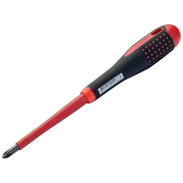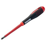 The Bahco ERGO™ VDE Insulated Phillips Screwdriver has been developed according to the scientific ERGO™ process and is suitable for work on live equipment up to 1,000V. With high-quality blade insulation moulded directly onto the blade. Individually inspected and manufactured according to IEC 60900, tested in a water bath at 10,000V. .