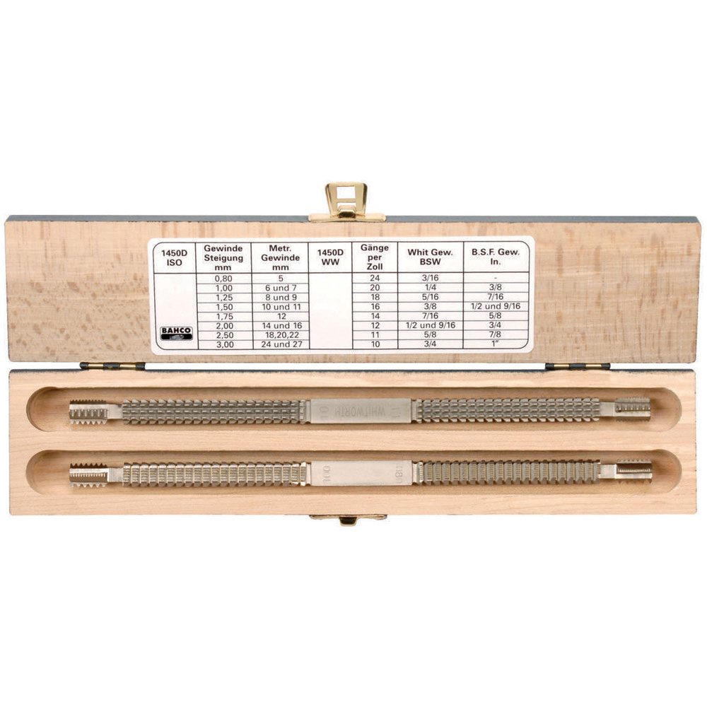 Bahco 1450D/2 Double Thread File Set 2-Piece Wooden Box Thread Table