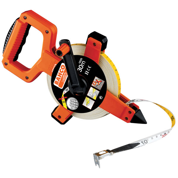 The Bahco LTS-30-E Open Reel Fibreglass Tape has both metric and imperial graduations.