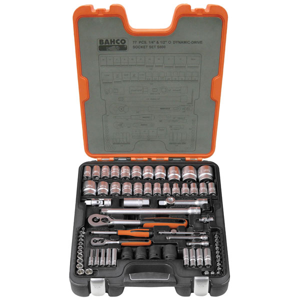 Bahco S800 chrome vanadium 1/4 and 1/2in Drive 77 piece metric and AF socket set, containing: