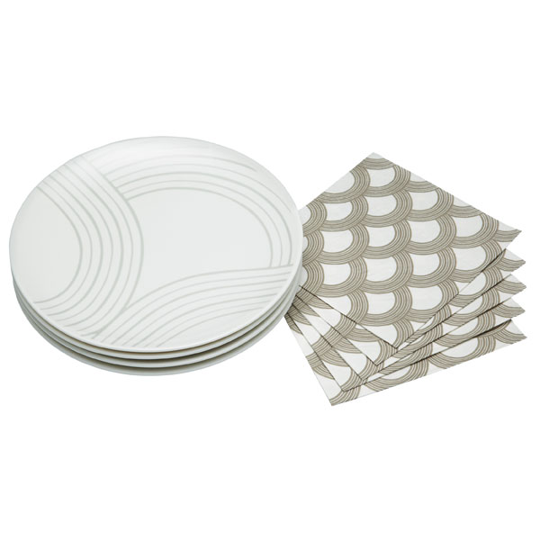 Set includes: 4 porcelain plates (18cm / 7"), 20 three-ply napkins