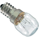 This 15W lamp has a clear pear-shape lens and an E14 base and is suitable for use as an oven lamp.