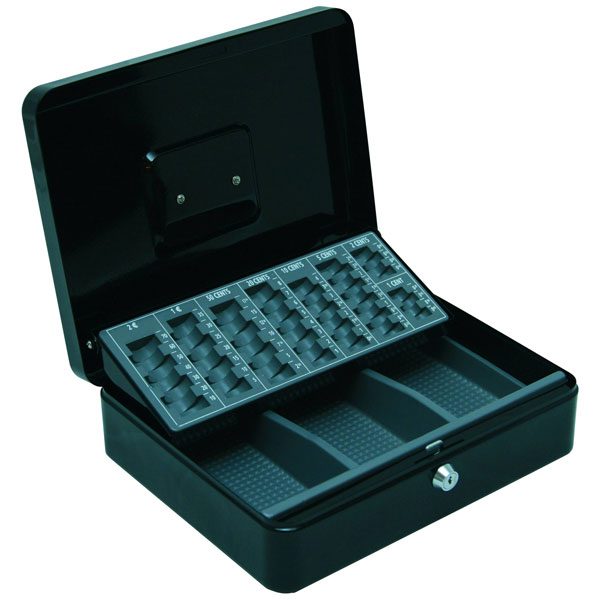 The Basi 2100-0800 cash box is a black, anti-theft money storage solution, measuring 300 x 90 x 240 mm. Manufactured by Basi, this fireproof safe box offers theft protection for securely holding cash and change. Ideal for retail environments, it ensures your money remains safe and organised.