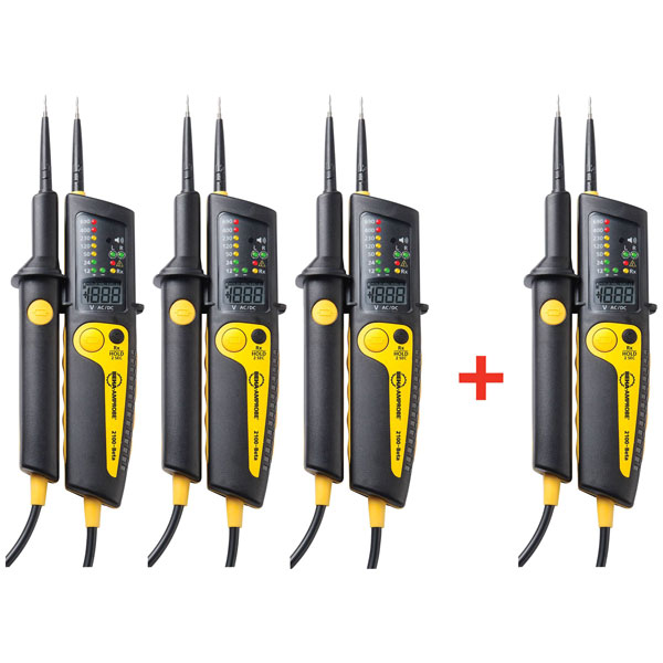 The Beha Amprobe 2100-BETA BUNDLE is a two-pole voltage tester capable of measuring up to CAT III 1000 V and CAT IV 600 V. It features both LCD and LED displays, along with vibration and acoustic alerts for enhanced user feedback. This voltage tester is ideal for safely performing electrical measurements and ensuring circuit integrity on various electrical systems.