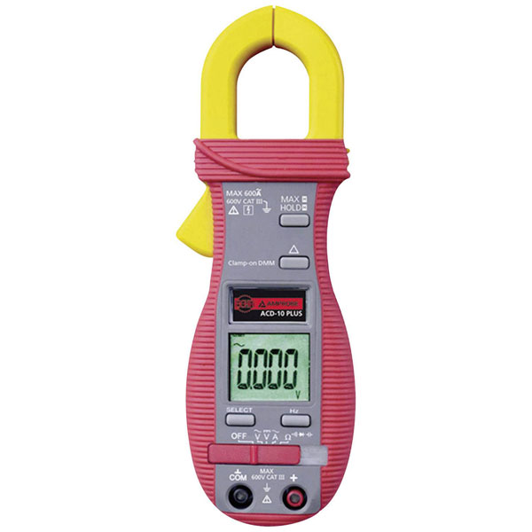 The Beha Amprobe ACD-10 PLUS Clamp Meter is a digital multimeter designed for measuring current, voltage, and frequency with a display count of 4000. It is handheld and rated for CAT III 600 V, suitable for measuring inrush and start-up currents. This versatile tool is ideal for electricians and technicians needing a reliable clamp-on ammeter for various electrical diagnostics.