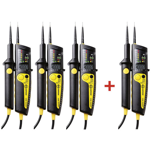 The Beha Amprobe 2100-GAMMA bundle is a two-pole voltage tester capable of handling CAT III 1000 V and CAT IV 600 V levels. Notable features include acoustic, LCD, LED indicators, and vibration alerts, enhancing usability and safety. It is typically used by electricians for accurate voltage detection and circuit verification tasks.