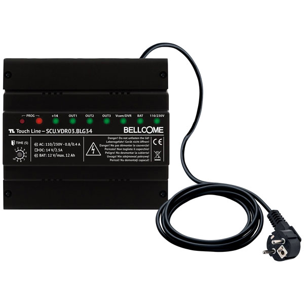 Bellcome's power supply unit in dark grey is designed as a corded accessory for door intercoms. As a crucial component, it ensures reliable power delivery and enhances the functionality of the intercom system. Typically, this unit is used in residential or commercial settings where secure and effective communication at entry points is essential.