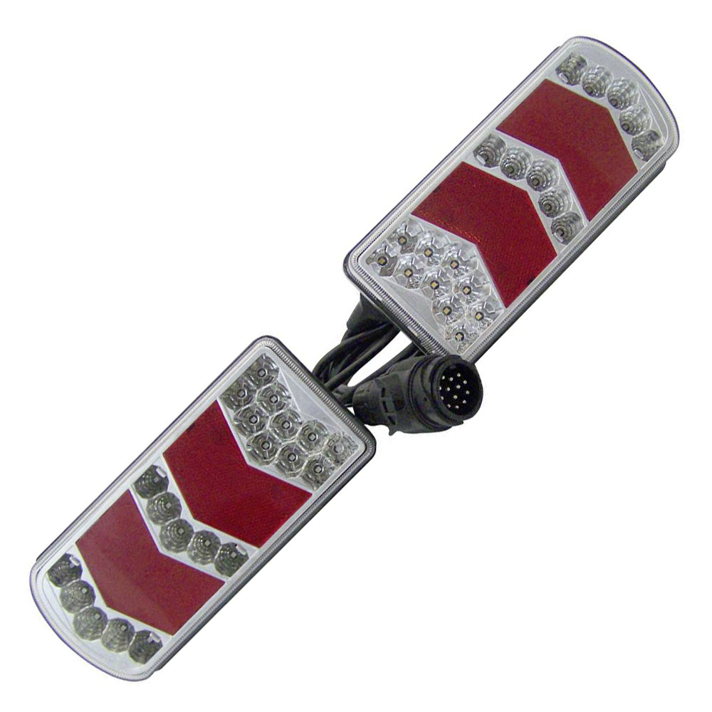 Berger & Schröter 20230 is a trailer lighting set characterised by its 13-pin connectivity and crafted from durable acrylic glass in a red and clear finish. Designed for comprehensive vehicular lighting, this set includes key components such as the turn signal, brake light, number plate light, rear fog lamp, reflector, reversing lamps, and tail light, all operating at 12 V. This trailer lighting set is ideally suited for use in trailers where reliable illumination is essential for safety and compliance with roadway regulations. Its robust construction ensures long-lasting performance, even in demanding environments, making it a preferred choice for engineers and technicians working in vehicle maintenance and manufacturing.
