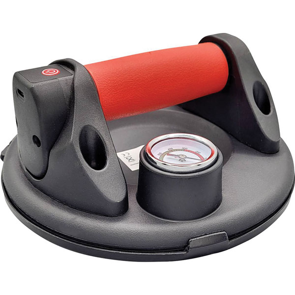 The Berger & Schröter 60823 is a battery-powered vacuum suction lifter with a maximum load capacity of 110 kg. It features a suction cup handle that ensures secure handling of various materials. This product is typically used for lifting and transporting glass, tiles, and other smooth surfaces safely.