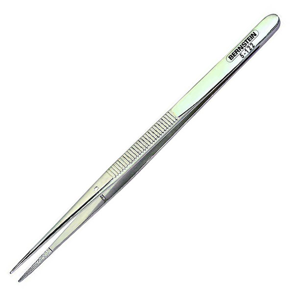 These steel engineer's tweezers from Bernstein are straight with narrow pointed tips and are ideal for use in electronic work.