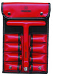 This compact set from Bernstein includes 8 sockets and a T-socket wrench with ½in square drive all supplied in a red imitation leather case.
