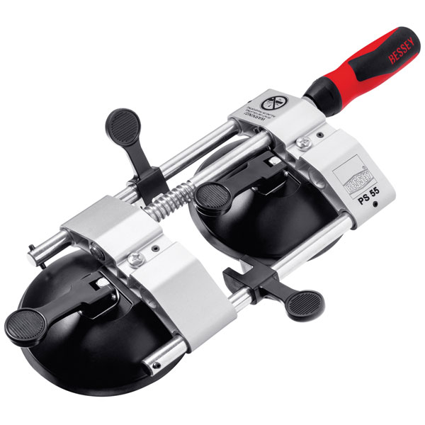 The Bessey PS55 is an ideal clamp for clamping smooth surfaces such as ceramic, granite, Corian® plastic, sheet metal and glass. There is a lever for compensating differences in height.