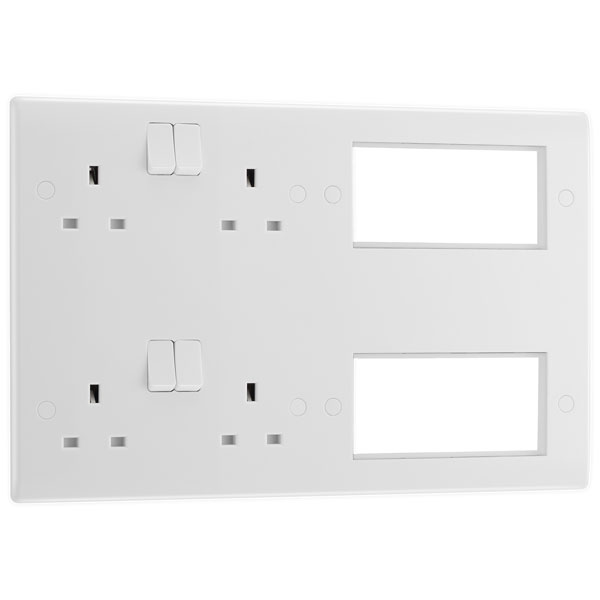 BG 8222EM8 White Nexus Moulded Combination Plate 2 X Double 13A Sw Socket 8 Mod