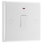 This Nexus 800 series single double pole switch from British General offers an outlet for a hardwired appliance in continuous operation that requires mains isolation, e.g. domestic/commercial water heaters and boilers. A capped flex outlet on the lower edge of the plate accommodates cable entry, secured by a reversible clamp. A low-power LED indicator is visible even when the switch is fitted under a counter. Installation is swift and secure, with colour-coded terminals, captive screws, and double pole switching for peace of mind. Fixing screws, instructions provided. Min. mounting box depth 25mm. The gently curved white moulding and screw caps are manufactured from high-grade Urea plastic, scratch/discolouration-resistant, inhibit the growth of harmful bacteria (MRSA, E. coli, Salmonella, Klebsiella) for added reassurance and a long working life. BG Nexus offers sleek white moulded wall accessories that effortlessly blend into modern design. 30-year guarantee; BS EN 60669-1, ASTA 1074