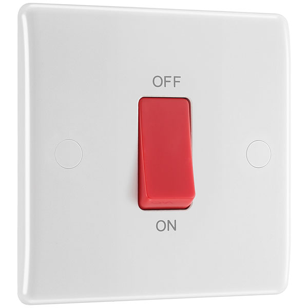 This 800 series 45A single cooker switch with red rocker from British General is ideal for use with cookers, ovens and hobs. The colour coded terminals with captive screws make this easy to install, with a minimum box depth 47mm required. Double pole switching and twin Earth terminals offer additional safety and make this suitable for high-integrity circuits (Ref. BS 7671:2008). The switch is manufactured from high-grade Urea plastic, which has a high resistance to fading, discolouration and scratches, with inherent anti-microbial properties proven to reduce bacteria and growth of infectious diseases (MRSA, E. coli, Salmonella, Klebsiella). Round white moulding and screw cover caps give this a clean and sleek appearance. The BG 800 series range offers quality white moulded wall accessories of exceptional value, with a 30-year guarantee for ultimate peace of mind. Certified to ASTA 1012 and BS EN60669-1.
