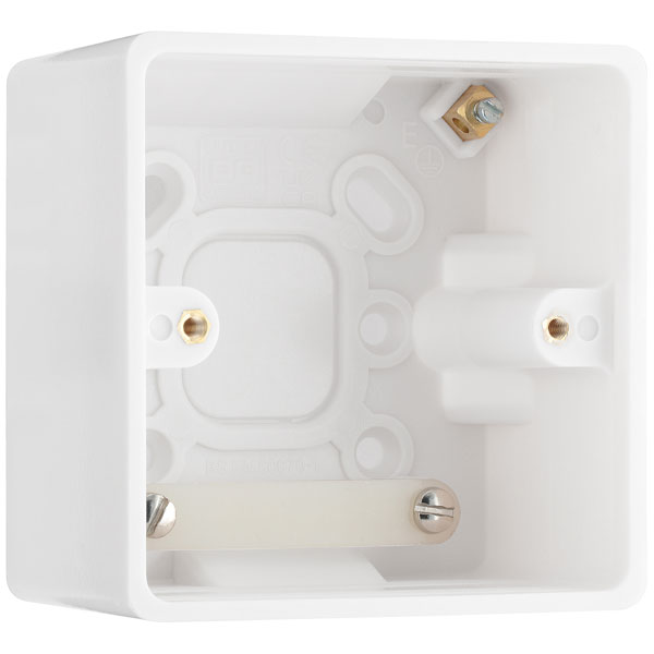 This British General 800 Series round-edged, single surface mounted back box is ideal for adding electrical accessories in spaces where installation within the wall is not possible or desired. With a 50mm depth this box has multiple knockouts for rear or conduit entry and an earth terminal in the base for a safe installation, and is perfect for installing switches, sockets and Euro module solutions without damaging tiles or plasterwork. The gently curved white moulding is manufactured from high-grade Urea material which has a high resistance to wear and discolouration, with anti-microbial properties that inhibit the growth of harmful bacteria. BG Nexus offers stylish white moulded wall accessories to suit both budget and design needs. Certified to BS 5733 and includes a 30-year manufacturers warranty.