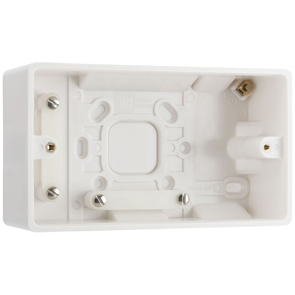 This British General 800 Series round-edged, double surface mounted back box is ideal for adding electrical accessories in spaces where installation within the wall is not possible or desired. With a 45mm depth this box has multiple knockouts for rear or conduit entry and an earth terminal in the base for a safe installation, and is perfect for installing switches, sockets and Euro module solutions without damaging tiles or plasterwork. The gently curved white moulding is manufactured from high-grade Urea material which has a high resistance to wear and discolouration, with anti-microbial properties that inhibit the growth of harmful bacteria. BG Nexus offers stylish white moulded wall accessories to suit both budget and design needs. Certified to BS 5733 and includes a 30-year manufacturers warranty.