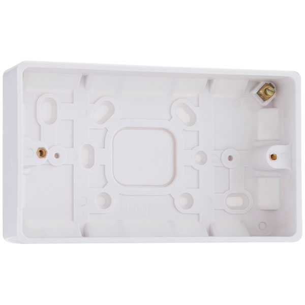 This British General 800 Series round-edged, double surface mounted back box is ideal for adding electrical accessories in spaces where installation within the wall is not possible or desired. With a 32mm depth this box has multiple knockouts for rear or conduit entry and an earth terminal in the base for a safe installation, and is perfect for installing sockets and Euro module solutions without damaging tiles or plasterwork. The gently curved white moulding is manufactured from high-grade Urea material which has a high resistance to wear and discolouration, with anti-microbial properties that inhibit the growth of harmful bacteria. BG Nexus offers stylish white moulded wall accessories to suit both budget and design needs. Certified to BS 5733 and includes a 30-year manufacturers warranty.