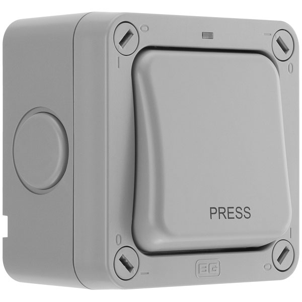BG WP14 Nexus Storm IP66 Weatherproof Slim Retractive Switch Print "Press" 20A