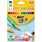 Supplied in a free wallet, this pack of 12 BiC Evolution triangle colouring pencils helps show children how to position their fingers on pencils and pens for best results when drawing and writing. The pencils are made from 50% recycled material and contain no wood, so are environmentally friendly.