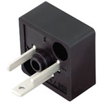 A 2+PE pin IP65 Size C male solenoid valve connector with solder termination.