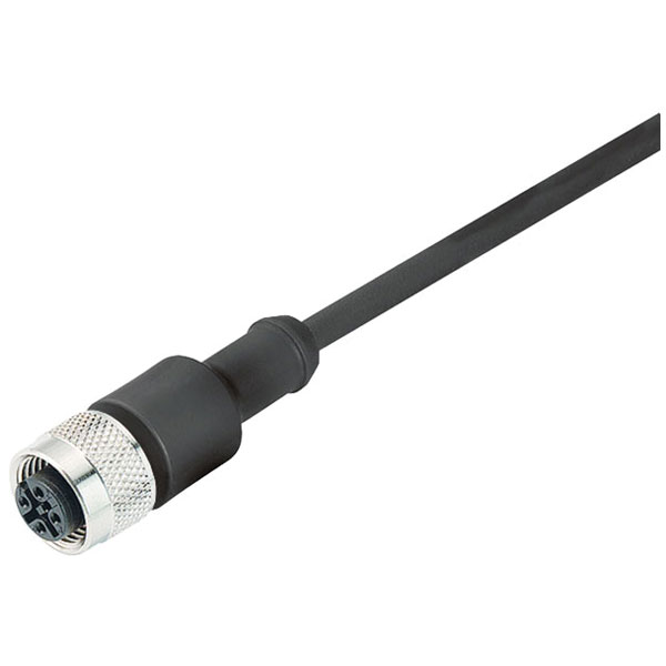 Binder produces a range of robust cable mount moulded terminals featuring a circular contact design, commonly utilised for electronic and electrical connections requiring secure and reliable three-pin configurations with varying cable lengths.