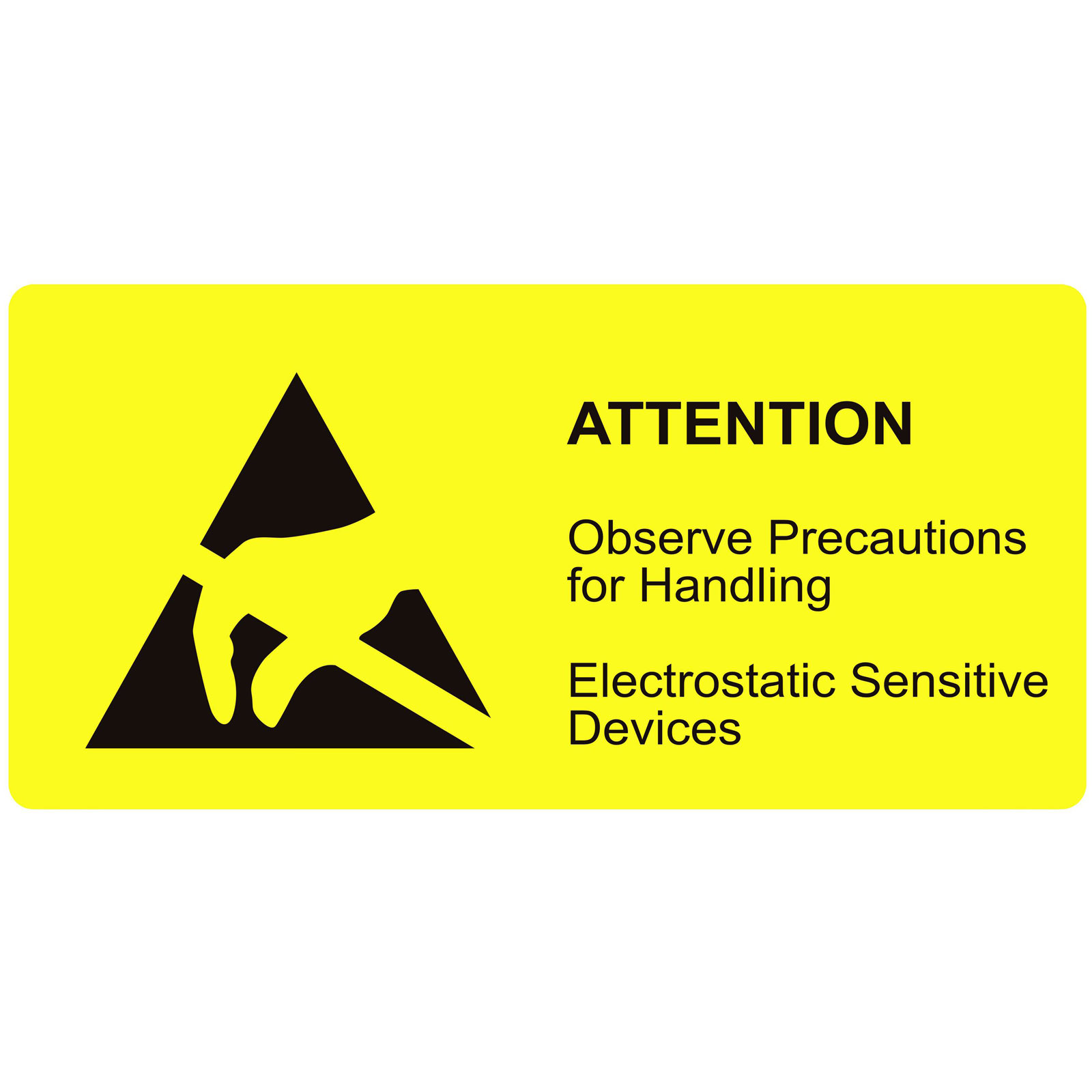 BJZ produces a range of yellow self-adhesive ESD symbol labels in various sizes and quantities.
