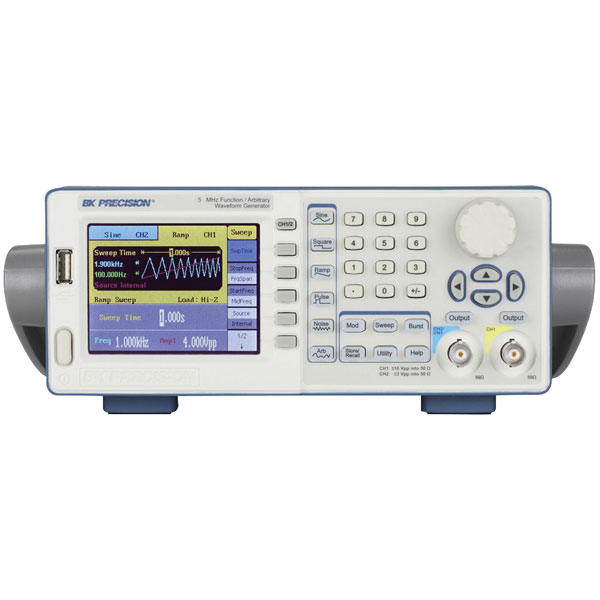 The BK Precision model 4052 5MHz dual-channel function / arbitrary waveform generator is capable of generating stable and precise sine, square, triangle, pulse, and arbitrary waveforms.