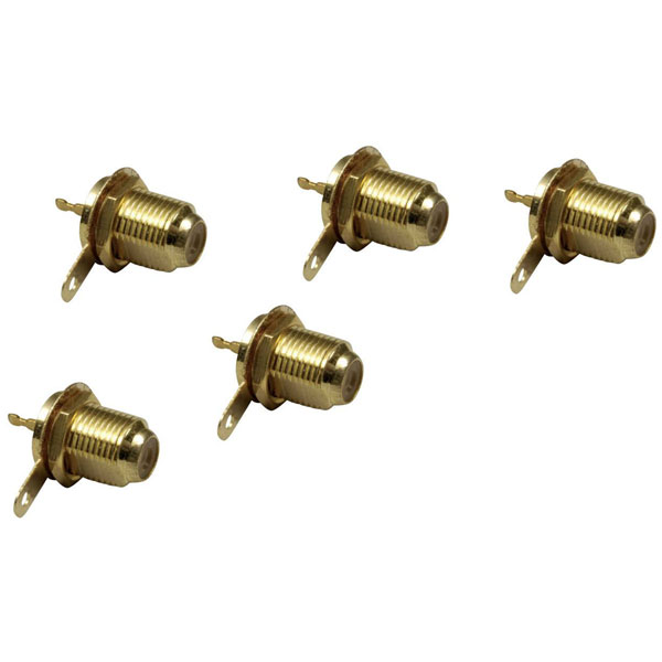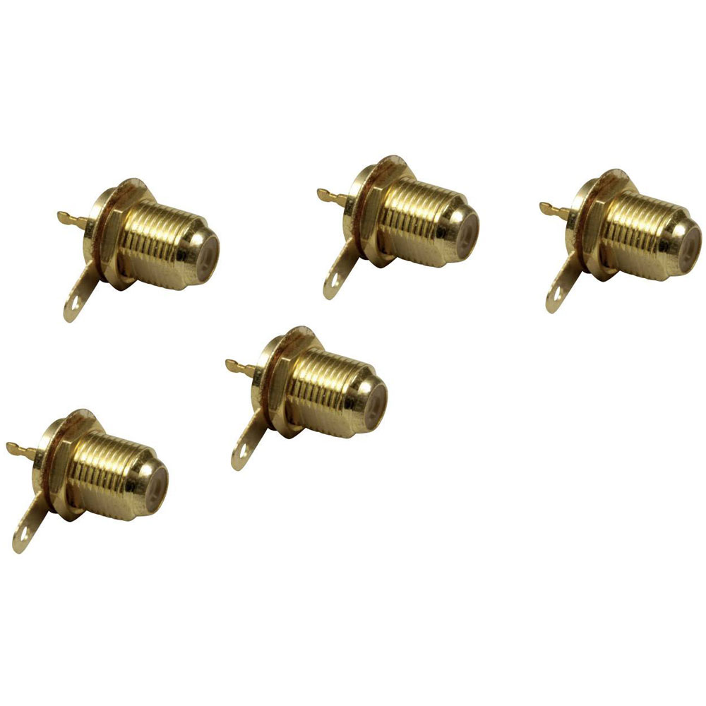 Manufactured by BKL Electronic, the 0403551 F socket is a recess-mount connector with gold-plated contacts to ensure optimal conductivity. This set includes five F sockets, making it suitable for various SAT and coaxial cable installations. It's typically used in signal transmission applications requiring reliable and high-quality connections.