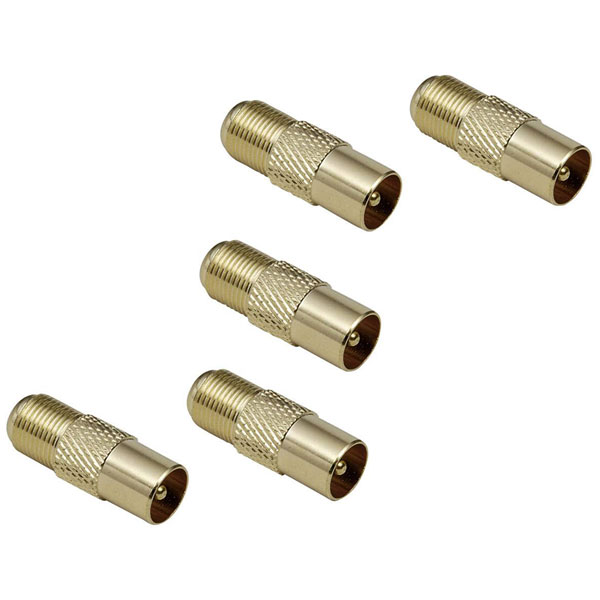 The BKL Electronic 0403556 Coax F adapter features gold-plated connections between IEC coax connectors and F sockets, enhancing signal quality and reducing corrosion. This adapter, supplied in a pack of 5, is ideal for use in satellite TV and other coaxial cable systems, ensuring reliable connections. As a product of BKL Electronic, it is designed for easy integration into existing setups and offers lasting performance.