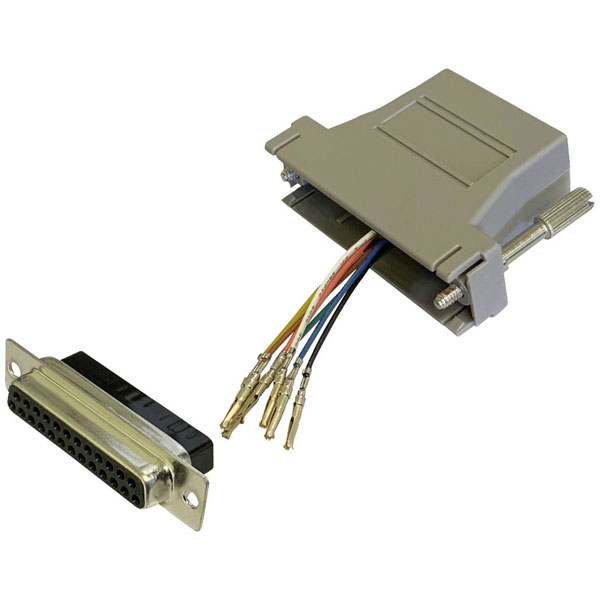 The BKL Electronic 10121130 is an adapter that converts a D-SUB socket with 25 pins to an RJ45 socket. It's a single-piece gender changer, ideal for simplifying connections between older equipment and modern networks. This adapter is typically used in scenarios requiring conversion between serial interfaces and network connections.