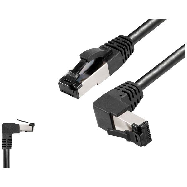 BKL Electronic 144027 is a high-performance RJ45 network cable designed for demanding network environments, offering a robust solution for data transmission with its CAT 8.1 S/FTP construction. The cable features a straight RJ45 connector on one end and an angled RJ45 connector on the other, facilitating seamless connectivity in spaces with constrained cable management options. With a length of 5 metres, this halogen-free black patch cable provides enhanced safety and reduced toxic emissions during combustion, suitable for installations requiring stringent safety standards. Engineered for advanced data throughput applications, this cable supports high-speed data transmission, making it an ideal choice for server rooms, data centres, and other professional networking applications where reliability and efficiency are critical.