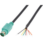 Mini-DIN (PS-2) connection cable with 6-pin plug. The black cable is shielded with foil and sheath wire, with cable diameter approximately 4.5mm. The other end of the cable has about 30mm of the sheathing stripped and is 4mm tin-plated.