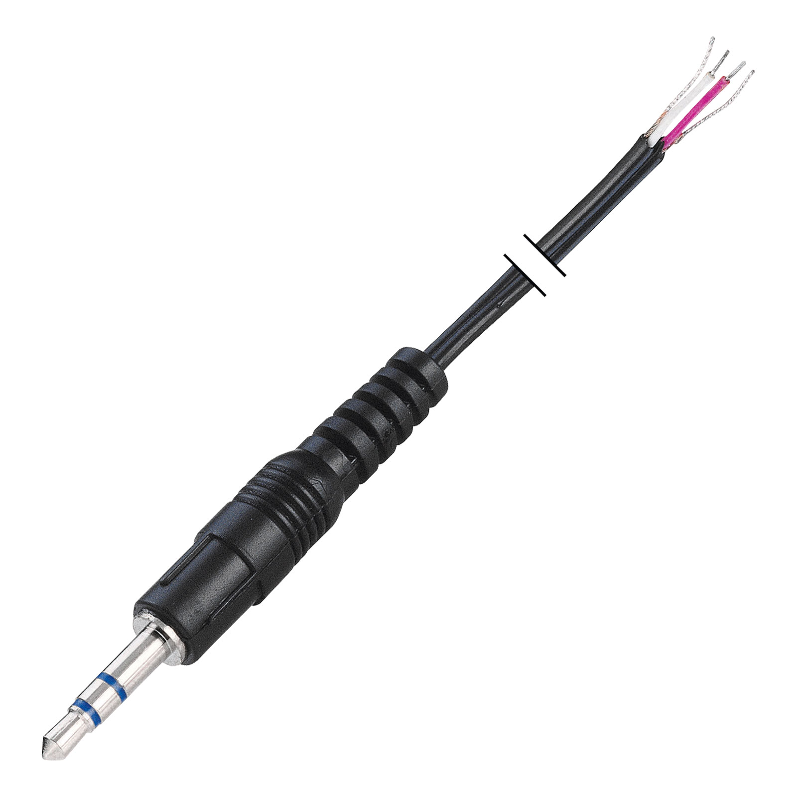 A 2.5mm moulded jack plug with a flexible strain relief for new devices or repairs. The round cable is individually shielded and finished with a black sleeve. The cable has been stripped at the end.