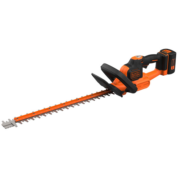 The BLACK + DECKER BCHTS3620L1 Hedge Timmer is part of the 36V battery platform for long lasting power without the hassle of a cord. Its blade with SAWBLADE™ tip helps you power through branches up to 35mm wide. Whilst the 55cm hardened steel dual-action blade with a 22cm blade gap slices through hedges with ease. The innovative POWERCOMMAND™ feature clears jams easily at the push of a button reducing down time.