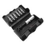 This 7-piece mixed Piranha screwdriver bit set from Black+Decker includes a selection of bits for use with slotted, Phillips and Pozidriv screws.