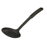 A black nylon skimmer, ideal for lifting food from hot fat or boiling water. Can be used in non-stick pots and pans without fear of damaging the surface.