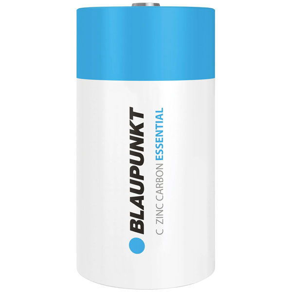 Blaupunkt manufactures C batteries with a zinc carbon composition, providing 1.5 V each. These batteries are versatile and commonly used for powering medium-drain devices like torches and portable radios. They are packaged in pairs, ensuring a convenient backup ready for when needed.