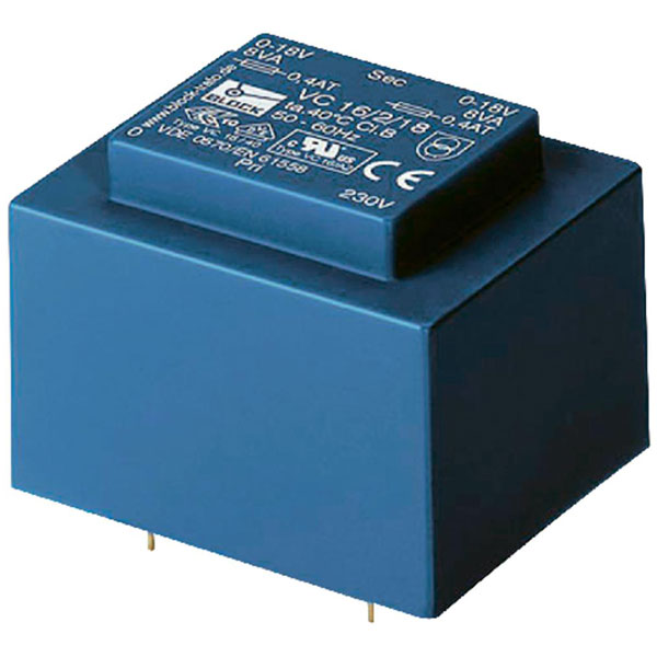 The Block VC PCB Mount Transformer 10VA 9V 1.11A is ideal for adjustment of the voltage and simple electrical isolation, while also acting as a safety isolating transformer for the safe electrical isolation of the input and output sides. Suitable for creating SELV and PELV circuits because of the limit on the output voltage.