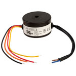 High quality encapsulated toroidal 15VA transformer with dual 15V secondary voltage from Blore Bowron. These transformers have a robust construction with a centre hole fixing and flying lead connections. The flying leads exit through the side of the unit instead of the bottom like many of the encapsulated toroidals available. This makes access much easier when the transformer is mounted. The transformers feature a single 230V AC 50/60Hz primary winding that can be connected in series, parallel or centre tap enabling a wide choice of voltage and current combinations to be selected.
