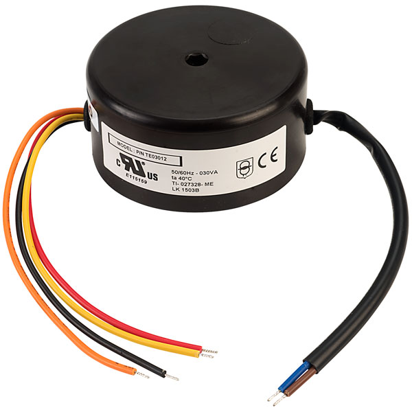 High quality encapsulated toroidal 30VA transformer with dual 12V secondary voltage from Blore Bowron. These transformers have a robust construction with a centre hole fixing and flying lead connections. The flying leads exit through the side of the unit instead of the bottom like many of the encapsulated toroidals available. This makes access much easier when the transformer is mounted. The transformers feature a single 230V AC 50/60Hz primary winding that can be connected in series, parallel or centre tap enabling a wide choice of voltage and current combinations to be selected.