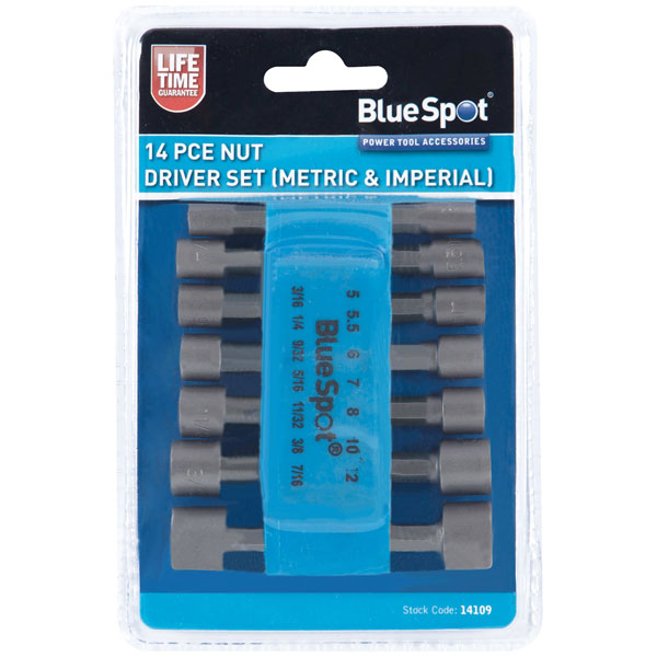 BlueSpot Tools 14109 Metric & Imperial Nut Driver Set, 14 Piece