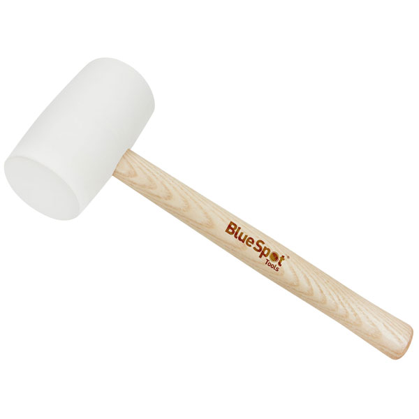 The BlueSpot Tools White Rubber Mallet with wooden handle. Its high quality rubber head is ideal for applications where a metal head would be unsuitable. The rubber head ensures minimal rebound after blows. Ideal for trade and diy users.