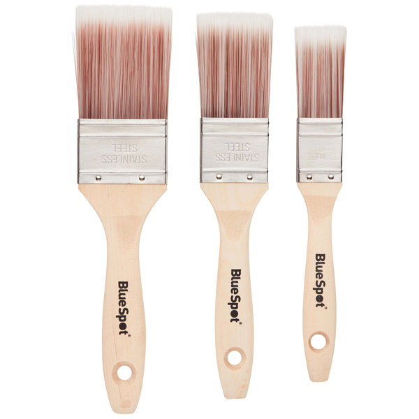 The BlueSpot Synthetic Paint Brush Set is ideal for use with all paints. They enable great paint loading and even distribution. No bristle loss. Quick and easy to clean. An ergonomic FSC approved wooden handle with stainless steel ferrule provides durability and corrosion resistance.