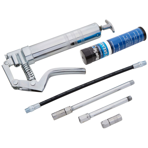 The BlueSpot 120cc Pistol Grip Grease Gun is manufactured from zinc alloy and A3 steel and features a spring primed air piston. Ideal for service of machinery where moving parts require lubrication.