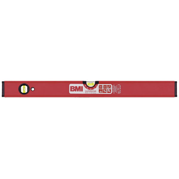 The BMI Magnetic spirit level, model 696050PM, is 50 cm long with a precision of 0.5 mm/m. It features a magnet for improved stability on metal surfaces. Ideal for construction and carpentry tasks, this tool ensures accurate levelling.